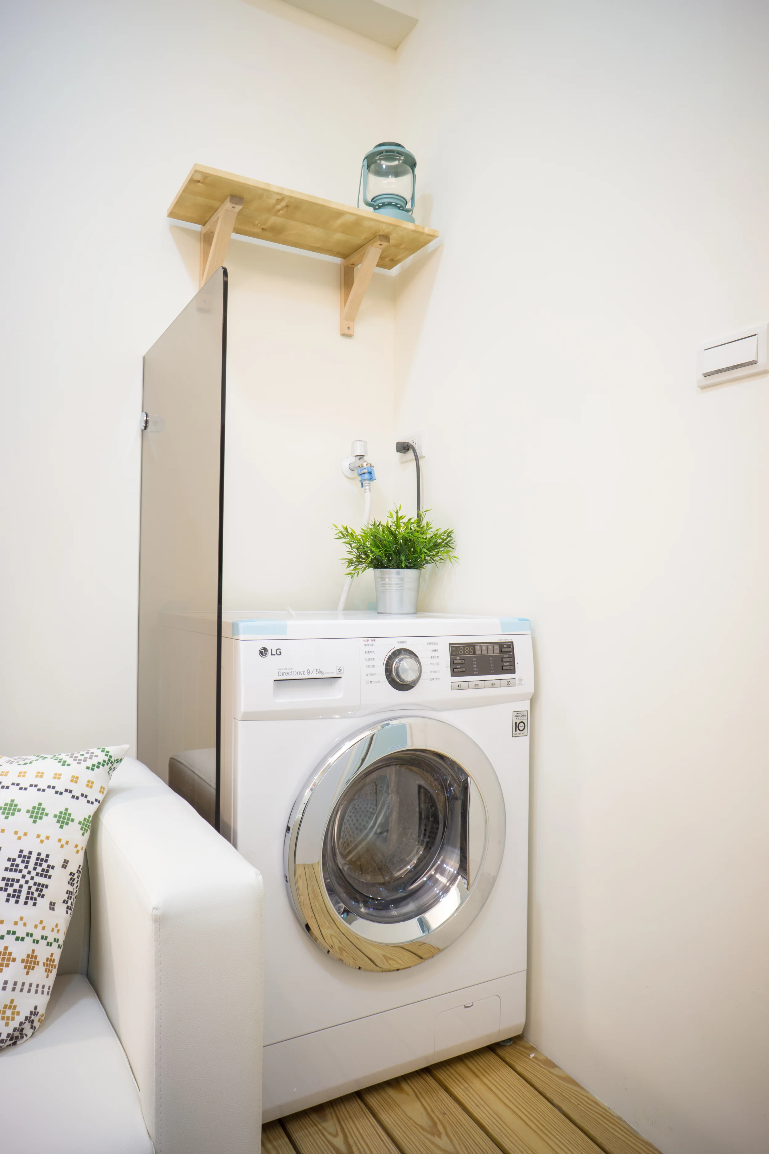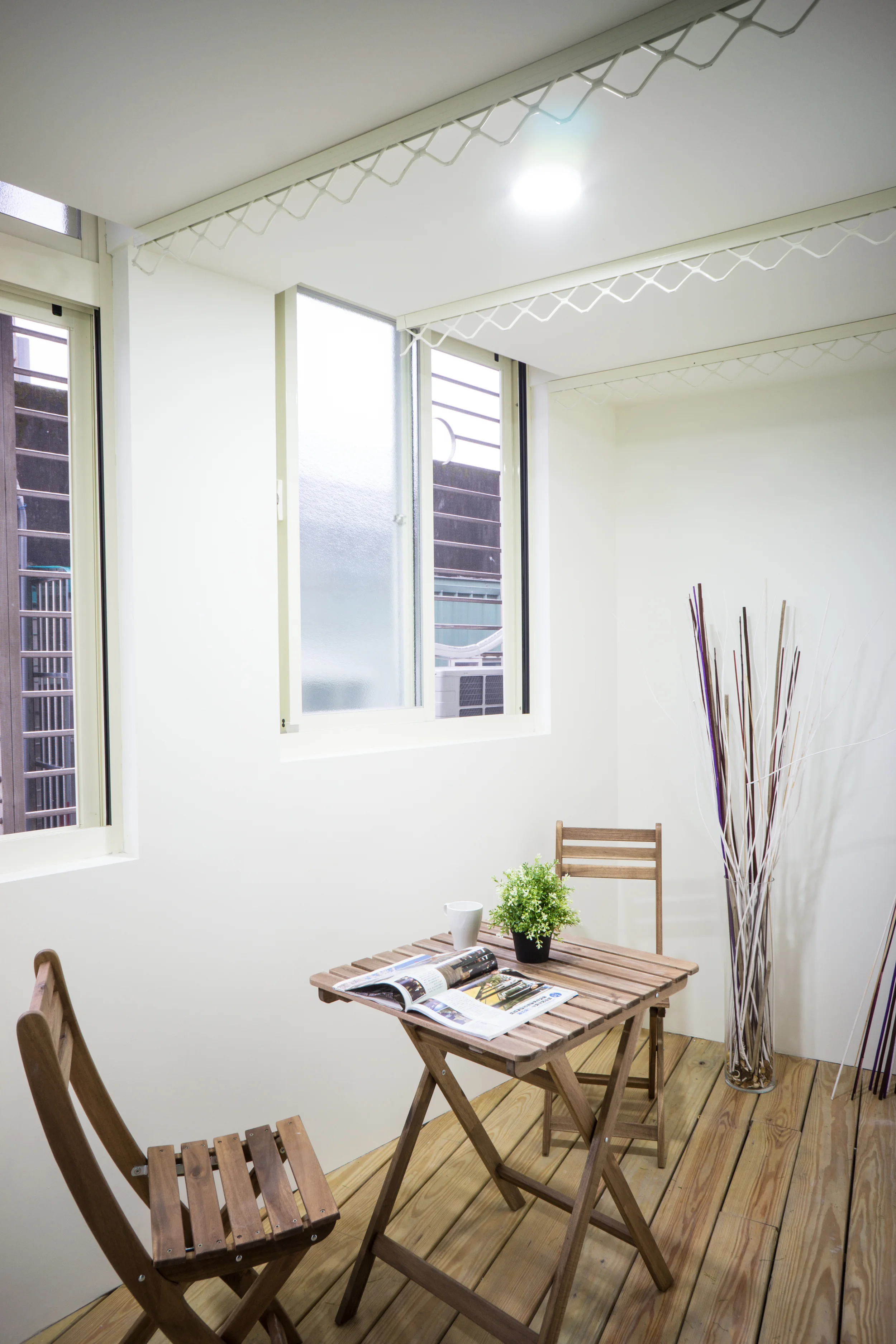 瓦斯桶不見了,電熱水器跟小鍋爐取而代之。原本的空位,變成了房客的休憩空間。
