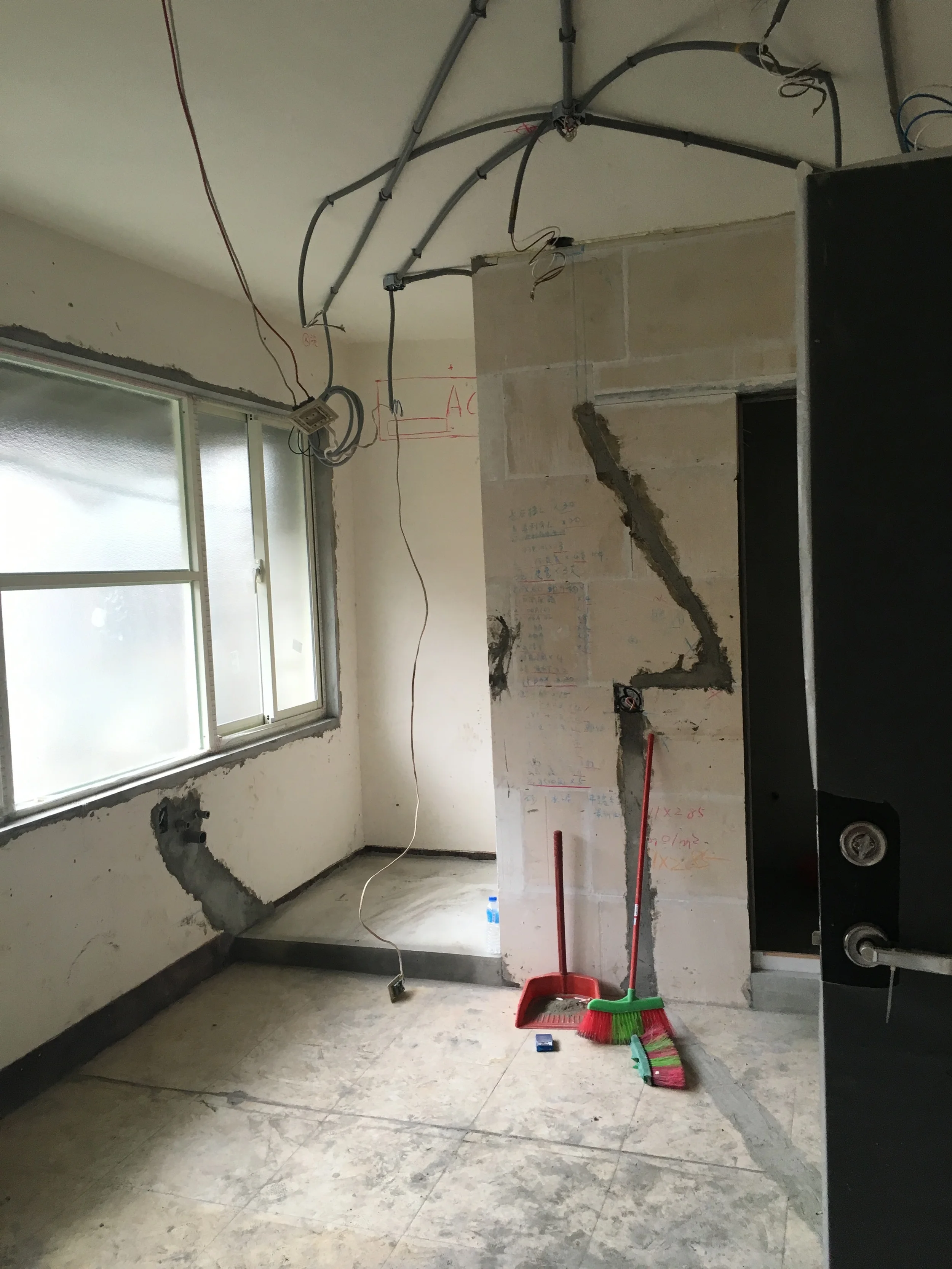 看天花板長得跟蜘蛛網一樣,就知道迴路有很多。這些準備都是為了預防未來房客入住時,電荷太高,電線走火的問題。