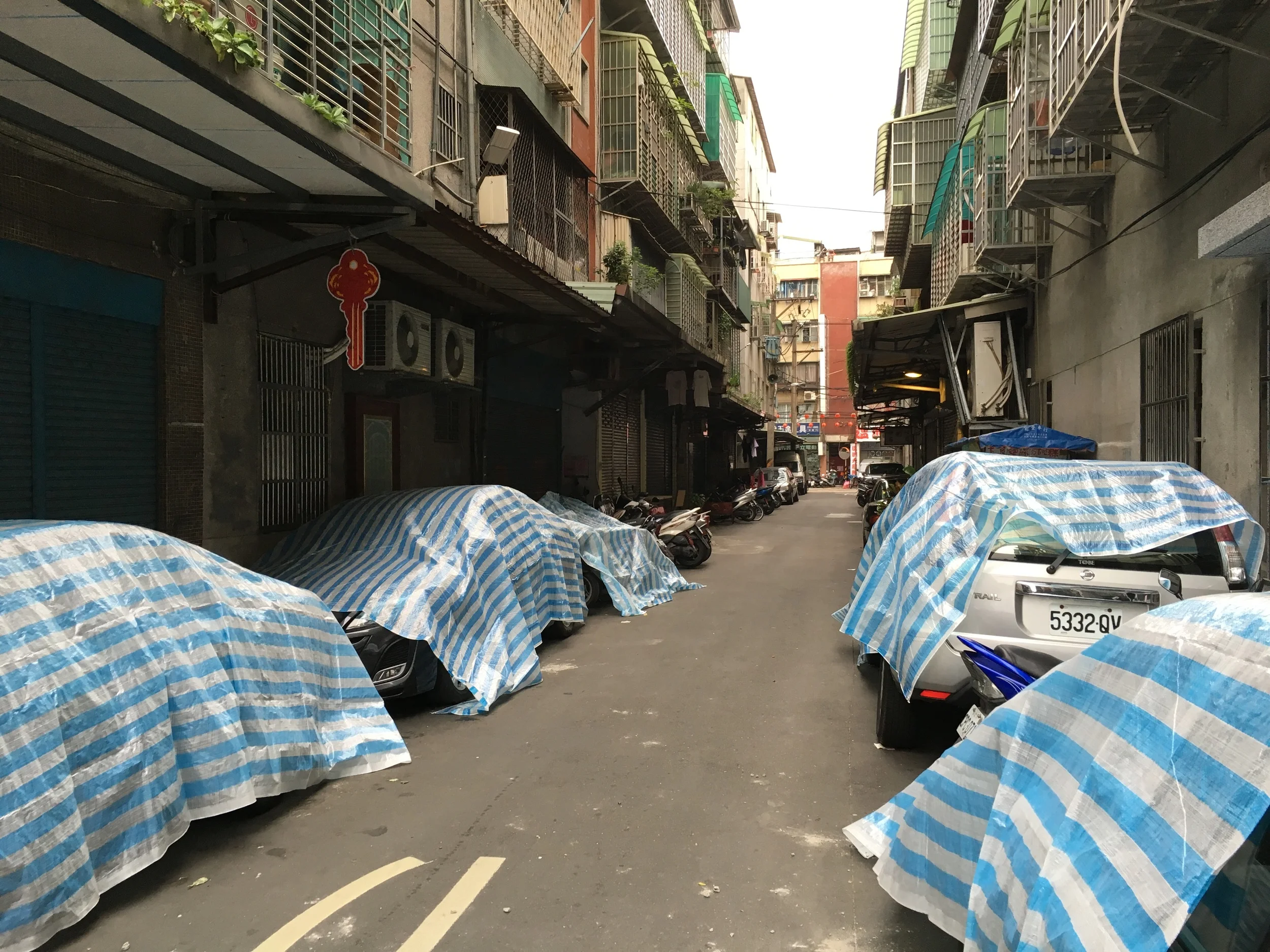 還是有一些屑屑會噴灑下去,所以還是要幫鄰居的車子都覆上帆布。